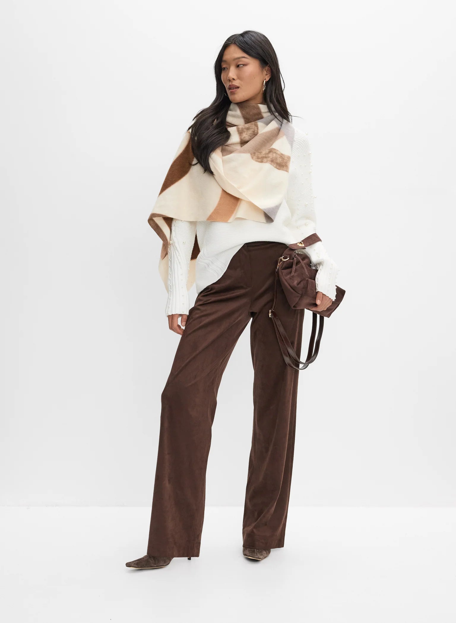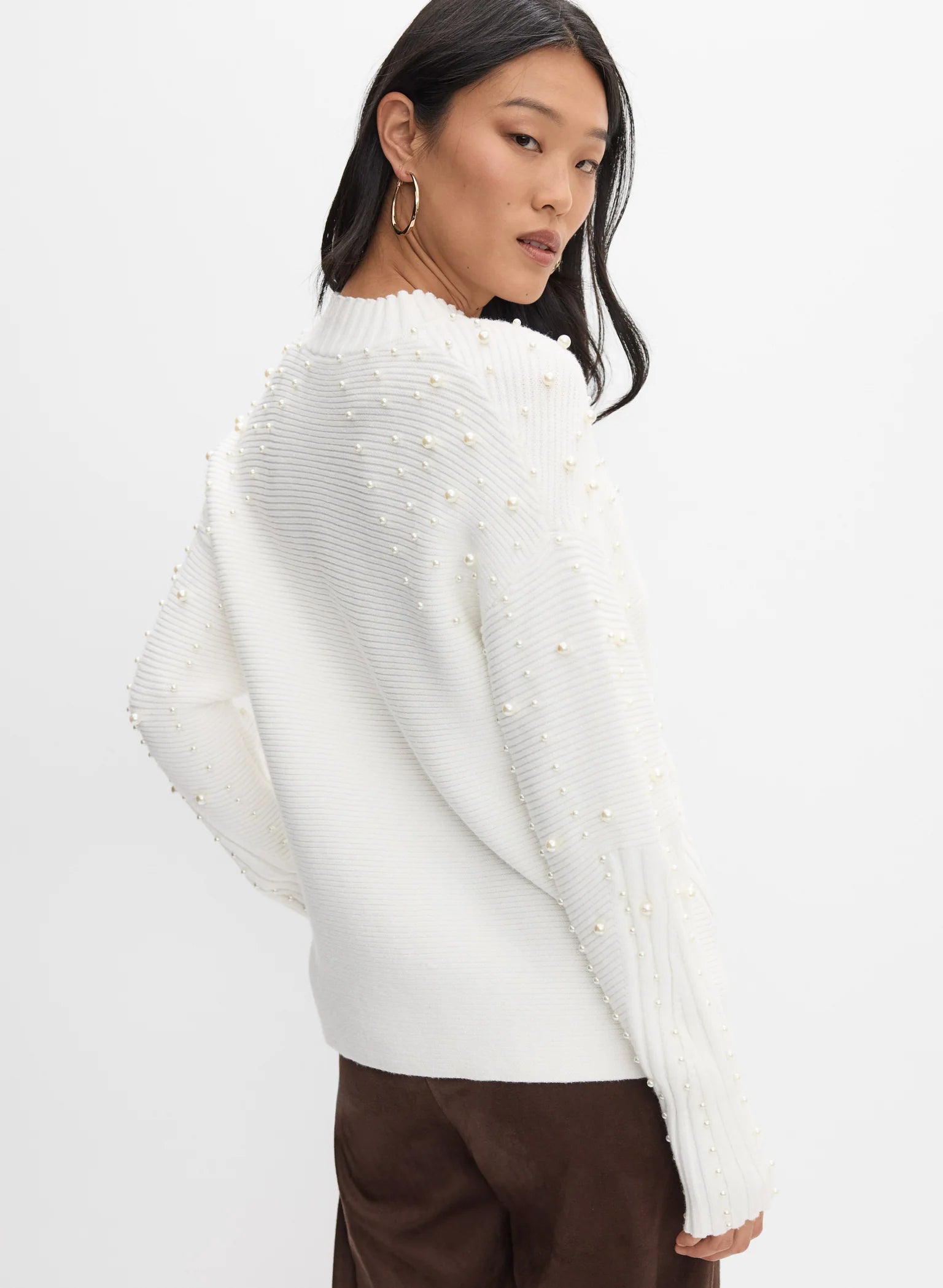 Add a touch of elegance to your winter collection with our pearl-embellished tunic-style sweater. Designed for both comfort and sophistication, it pairs beautifully with faux suede pants or tailored trousers for a polished, modern look.